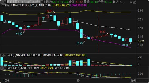 原油策略:实时现报价61.2一线,做空策略临盘给出提示。